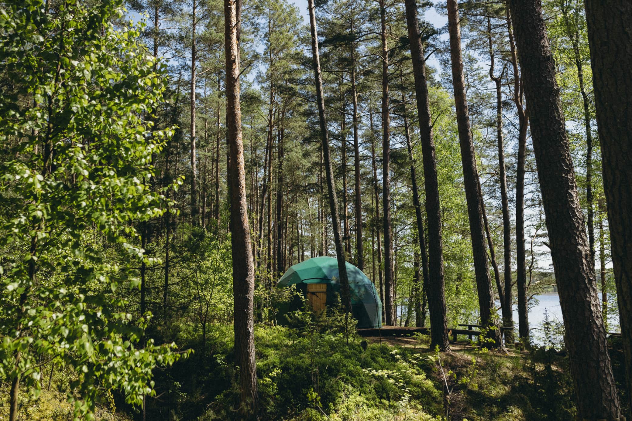 The campground features three domes – in addition to this one, you’ll also find the Asalnai Dome and the Laumė Dome. Tent camping is also welcome. There are designated fire pits and picnic shelters available.